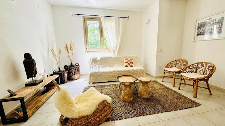 Das Ferienhaus verfügt über eine Klimaanlage, 2 Schlafzimmer, ein Wohnzimmer sowie eine voll ausgestattete Küche mit Kühlschrank und Kaffeemaschine. Darüber hinaus sind 3 Badezimmer mit Dusche und kostenlosen Pflegeprodukten vorhanden. Handtücher und Bettwäsche werden bereitgestellt. Ein Grill steht für die Nutzung zur Verfügung.