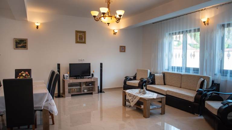 Verbringen Sie einen erholsamen Aufenthalt im Casa Ilies in Galeş, einem charmanten Bauernhof mit wunderschönem Bergblick. Genießen Sie die ruhige Atmosphäre, den Garten und die Terrasse sowie kostenfreies WLAN und Privatparkplätze. Das kontinentale Frühstück sorgt für einen guten Start in den Tag. Die zentrale Lage ermöglicht es Ihnen, die Umgebung zu erkunden und Sehenswürdigkeiten wie den Union Square und den Rathausturm von Sibiu zu besuchen. Der internationale Flughafen Hermannstadt ist nur eine kurze Autofahrt entfernt.
