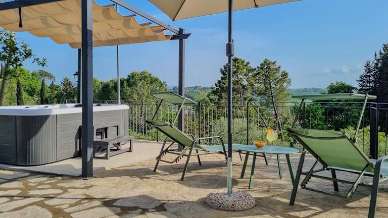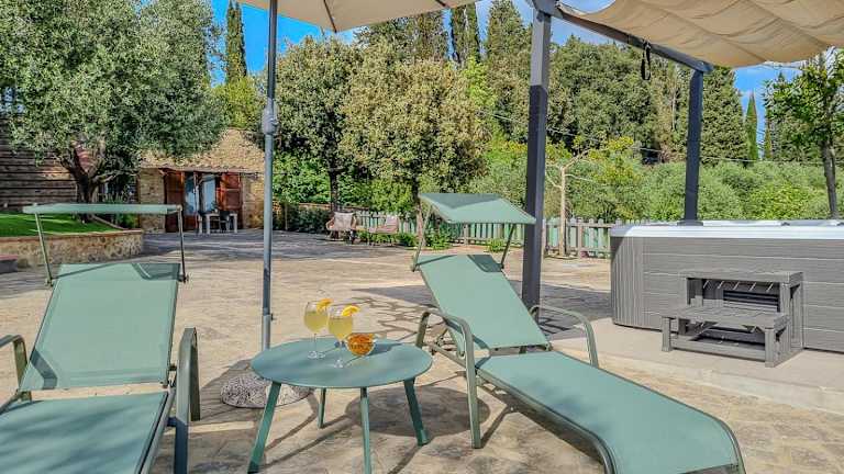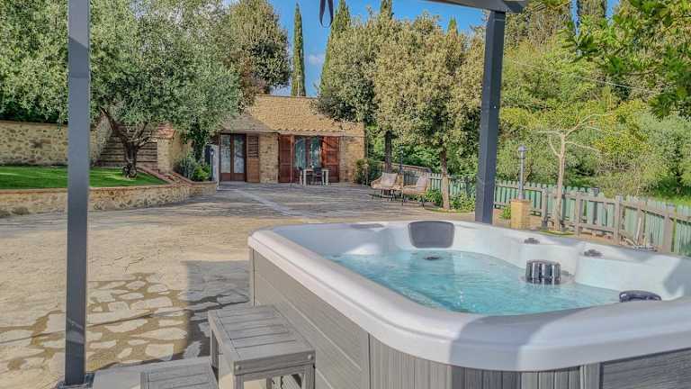 Casa Iris - Home In the heart of Tuscany & jacuzzi bietet Übernachtungsmöglichkeiten in einem Ferienhaus mit Zugang zu einem Whirlpool. Die Unterkunft ist klimatisiert und verfügt über verschiedene Annehmlichkeiten für einen komfortablen Aufenthalt.