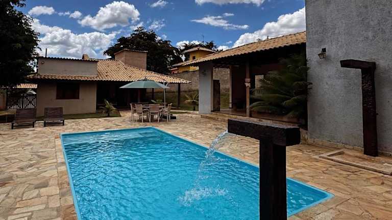Das Ferienhaus im Casa Jatobá da Serra verfügt über 3 Schlafzimmer und bietet Platz für größere Gruppen oder Familien. Das Wohnzimmer ist mit einem Flachbild-Kabel-TV ausgestattet und die voll ausgestattete Küche bietet alles, was Sie für die Zubereitung Ihrer eigenen Mahlzeiten benötigen. Es gibt insgesamt 4 Badezimmer mit Dusche. Das Haus verfügt auch über einen gemütlichen Sitzbereich, in dem Sie sich entspannen können.