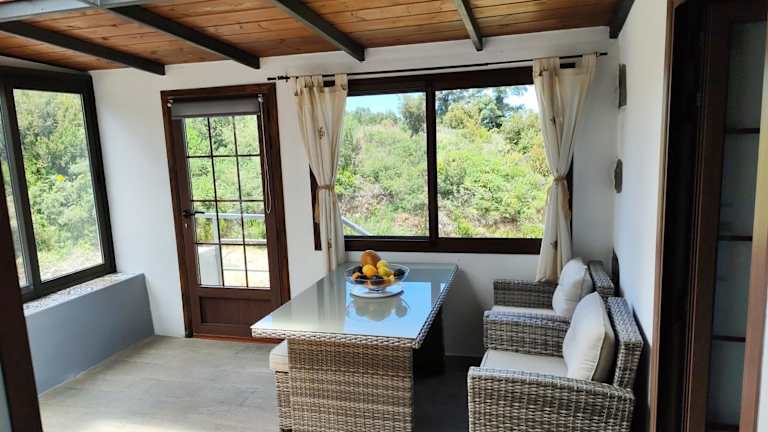 Das Ferienhaus bietet ein Schlafzimmer, ein Wohnzimmer, einen Flachbild-TV sowie eine gut ausgestattete Küche mit Kühlschrank und Oven. Ein Badezimmer mit Dusche ist ebenfalls vorhanden. Handtücher und Bettwäsche werden zur Verfügung gestellt. Die Terrasse des Ferienhauses ermöglicht den Blick aufs Meer.