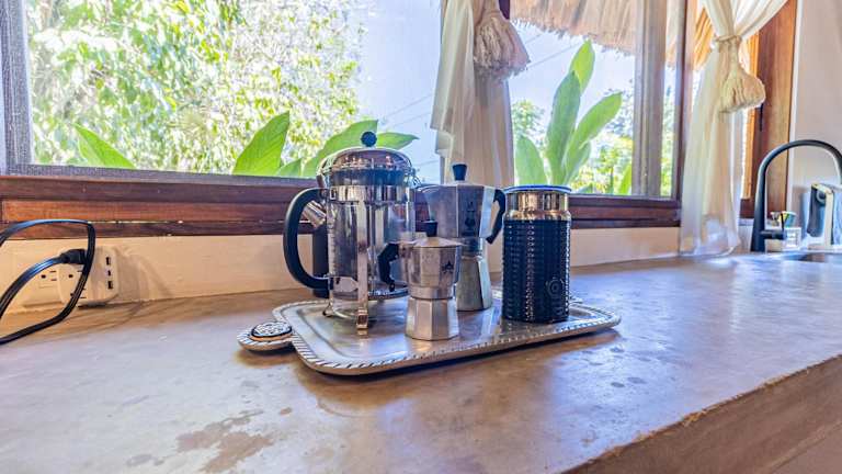 Das Chalet verfügt über eine Klimaanlage und besteht aus einem Schlafzimmer, einem Wohnzimmer und einer voll ausgestatteten Küche, die mit einem Kühlschrank und einer Kaffeemaschine ausgestattet ist. Zusätzlich sind ein Badezimmer mit Dusche und kostenlosen Pflegeprodukten vorhanden. Handtücher und Bettwäsche werden bereitgestellt.