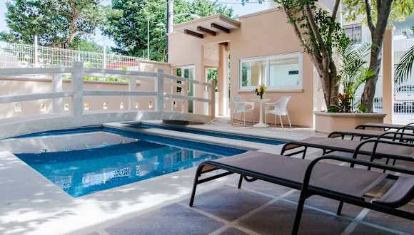 Das Casa Leo in Playa del Carmen ist ein charmantes Aparthotel, das mit seinem Poolblick und kostenfreiem WLAN punktet. Die Unterkunft bietet komfortable Apartments mit voll ausgestatteter Küche und eigenem Bad. Morgens erwartet Sie ein leckeres amerikanisches Frühstück. Das Hotel bietet auch Fahrradverleih und Autovermietung an. Die Lage ist ideal, da der Strand und der Busbahnhof in der Nähe sind. Der internationale Flughafen Cozumel ist ebenfalls gut erreichbar. Genießen Sie einen angenehmen Aufenthalt im Casa Leo!