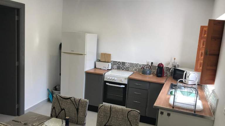 Die Ferienwohnung besteht aus zwei Schlafzimmern, einem Wohnzimmer und einer voll ausgestatteten Küche, die mit einem Kühlschrank und einer Kaffeemaschine ausgestattet ist. Des Weiteren sind zwei Badezimmer mit Dusche und kostenlosen Pflegeprodukten vorhanden. Handtücher und Bettwäsche werden zur Verfügung gestellt.