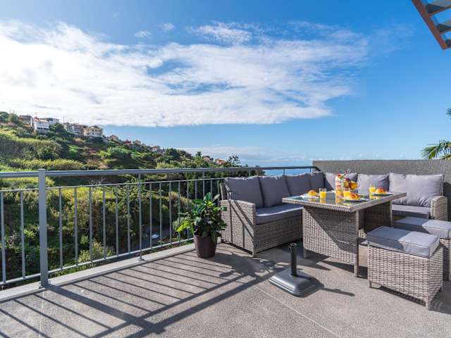 Die Unterkunft beinhaltet 2 Schlafzimmer und 2 Badezimmer und ist mit Bettwäsche, Handtüchern und einem Flachbild-TV mit Satellitenkanälen ausgestattet. Ein Essbereich sowie eine Terrasse mit Meerblick sind ebenfalls vorhanden.