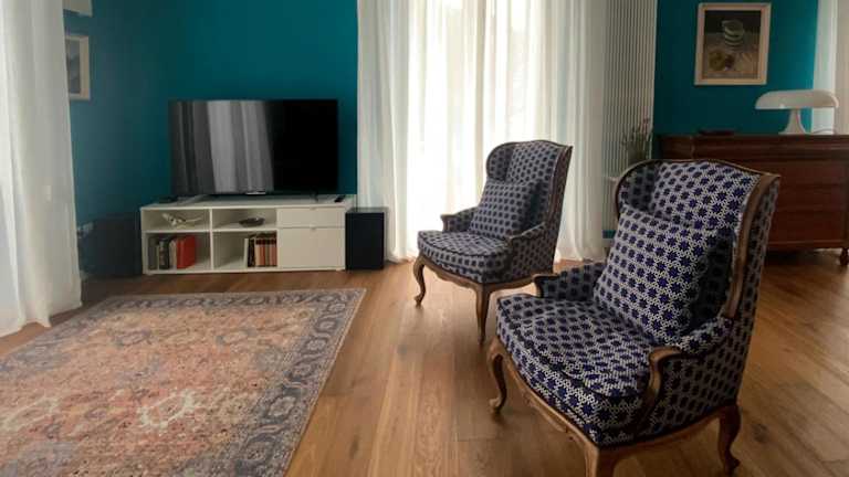 Die Ferienwohnung verfügt über 2 Schlafzimmer, ein Wohnzimmer sowie eine voll ausgestattete Küche mit Kühlschrank und Kaffeemaschine. Es sind 2 Badezimmer vorhanden, die jeweils mit einem Bidet und einer Dusche ausgestattet sind. Des Weiteren gibt es einen Flachbild-TV mit Satellitenkanälen.