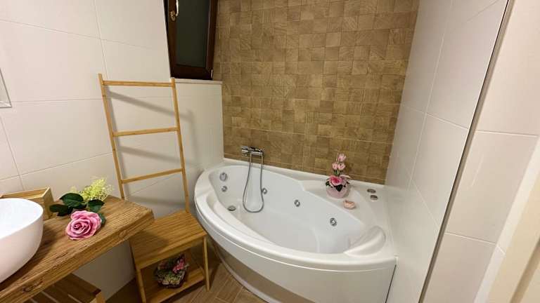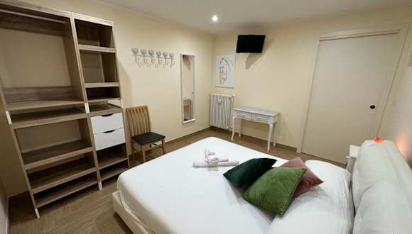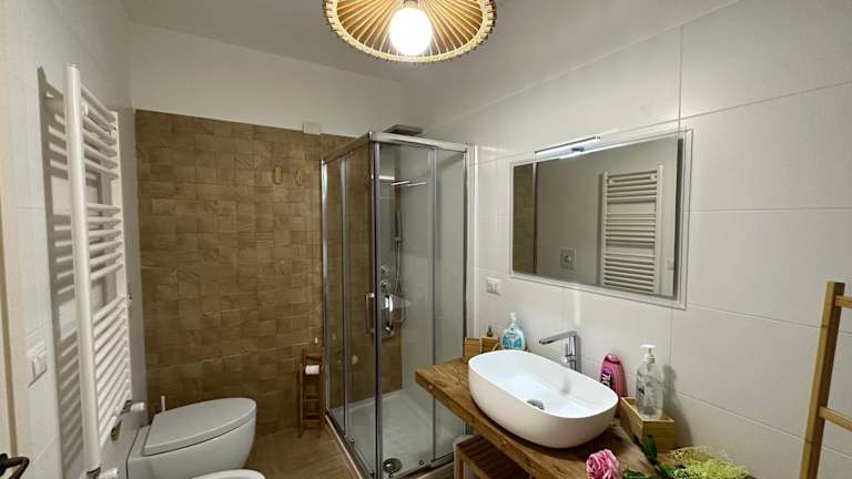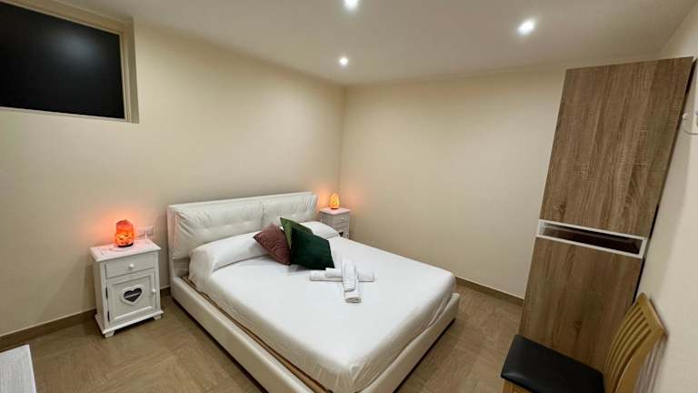 Das Ferienhaus umfasst zwei klimatisierte Schlafzimmer und ein Badezimmer, das mit einem Bidet, einer Dusche und einem Haartrockner ausgestattet ist. Handtücher und Bettwäsche sind ebenfalls vorhanden.