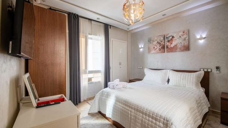 Die Unterkunft befindet sich in Rabat, nur 2,4 km vom Strand Plage de Rabat entfernt. In der näheren Umgebung liegen die Bibliothèque Nationale du Royaume du Maroc (1,5 km) und die Festung Kasbah des Oudaia (2,7 km). Weitere Sehenswürdigkeiten wie der Hassan-Turm (3,2 km) und der Yachthafen Bouregreg (5,1 km) sind ebenfalls in der Nähe. Der nächstgelegene Flughafen ist der Flughafen Rabat Salé, etwa 12 km entfernt.