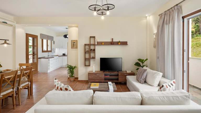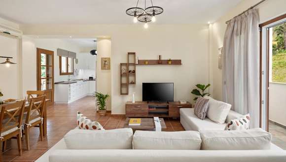 Das Casa Luna D'Argento Corfu ist ein geräumiges Ferienhaus mit drei Schlafzimmern und zwei Badezimmern. Die Zimmer sind komfortabel eingerichtet und bieten eine entspannte Atmosphäre für einen erholsamen Aufenthalt. Das Ferienhaus verfügt über einen Flachbild-TV, einen Essbereich und eine voll ausgestattete Küche, in der die Gäste ihre eigenen Mahlzeiten zubereiten können. Eine Terrasse mit Blick auf die Berge bietet eine schöne Umgebung zum Entspannen und Genießen der malerischen Umgebung.