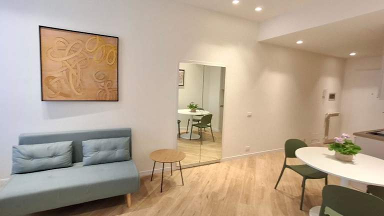 Die Ferienwohnung verfügt über ein Schlafzimmer, ein Wohnzimmer, eine voll ausgestattete Küche mit Kühlschrank sowie ein Badezimmer mit Bidet und Haartrockner. Handtücher und Bettwäsche werden bereitgestellt.