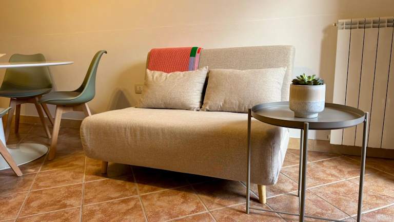 Das Ferienhaus verfügt über ein Schlafzimmer, eine Küche mit einem Kühlschrank und einem Ofen. Zusätzlich sind ein Flachbild-TV, ein Sitzbereich und ein Badezimmer mit einem Bidet vorhanden. Handtücher und Bettwäsche werden bereitgestellt.