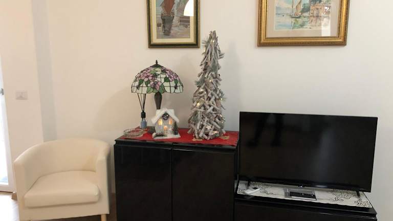 Die Ferienwohnung umfasst 2 Schlafzimmer und 1 Badezimmer. Zur Ausstattung gehören Bettwäsche, Handtücher, ein Flachbild-TV mit Kabelkanälen, ein Essbereich, eine voll ausgestattete Küche sowie ein Balkon mit Seeblick.