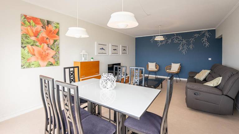 Die Ferienwohnung verfügt über 3 Schlafzimmer, einen Flachbild-TV, eine gut ausgestattete Küche und ein Badezimmer mit einer Dusche.