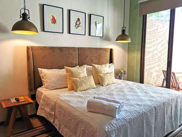 Das Ferienhaus umfasst ein Schlafzimmer, ein Wohnzimmer, eine voll ausgestattete Küche mit einem Kühlschrank und einer Kaffeemaschine sowie ein Badezimmer mit Dusche und kostenlosen Pflegeprodukten. Handtücher und Bettwäsche werden bereitgestellt.