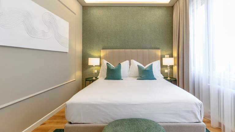 Die Zimmer sind mit einem Schreibtisch, einer Kaffeemaschine, einem Safe und einem Flachbild-TV ausgestattet. Jedes Zimmer verfügt über ein eigenes Badezimmer mit einer Dusche. Zudem sind die Zimmer mit einem Wasserkocher ausgestattet. Ausgewählte Zimmer bieten eine Küche mit Kühlschrank, Geschirrspüler und Mikrowelle. Bettwäsche und Handtücher sind vorhanden und werden nach den Richtlinien der örtlichen Behörden gewaschen.