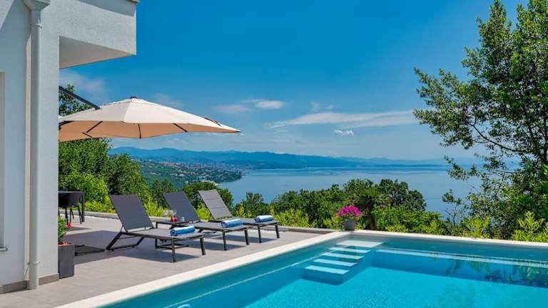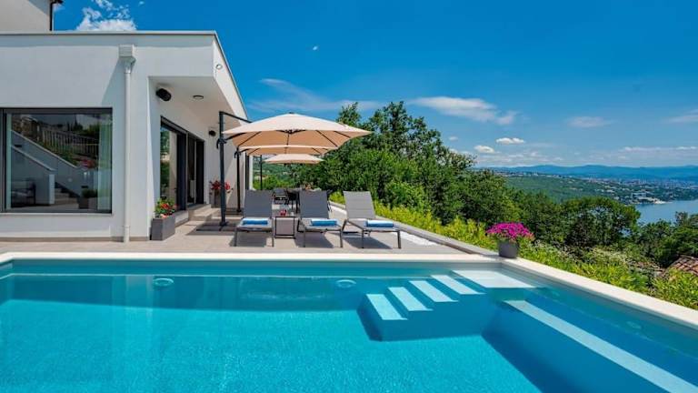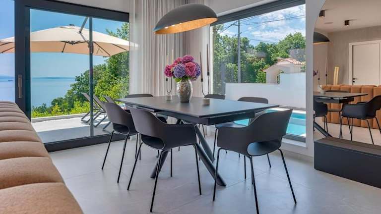 Die Unterkunft befindet sich in einer ruhigen Lage in der Nähe des Strandes Volosko, nur etwa 1,2 km entfernt. Der Strand Črnikovica ist 800 m entfernt, während der Strand Škrbići 1,6 km von der Villa entfernt liegt. Die Entfernung zum nächsten Flughafen Rijeka beträgt 39 km.