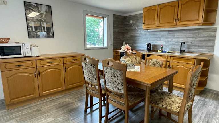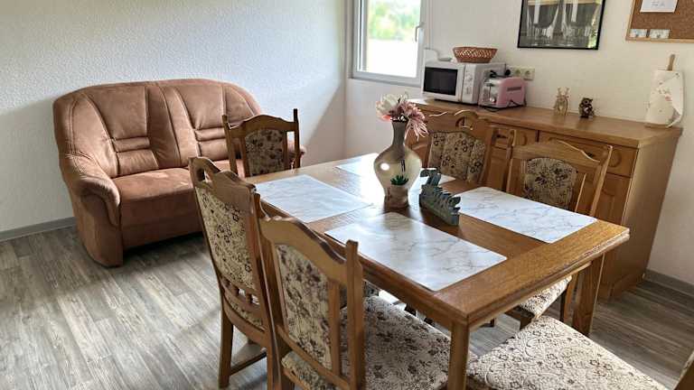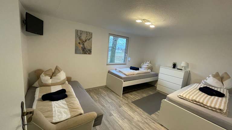 Die Ferienwohnung beinhaltet zwei Schlafzimmer, ein Wohnzimmer, einen Flachbild-TV, eine gut ausgestattete Küche mit Kühlschrank und Ofen sowie ein Badezimmer mit Dusche.