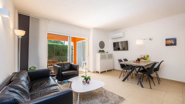 Die Ferienwohnung bietet 2 Schlafzimmer, 2 Badezimmer, eine voll ausgestattete Küche, einen TV mit Kabelkanälen sowie eine Terrasse mit Gartenblick. Die Unterkunft ist klimatisiert und umfasst Einrichtungen wie Heizung und bietet zudem ein Babybett für Kleinkinder an.