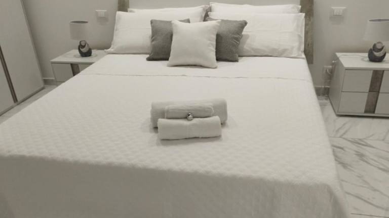 Die Ferienwohnung besteht aus zwei Schlafzimmern, einem Wohnzimmer und zwei Badezimmern mit einem Bidet und einer Dusche. Handtücher und Bettwäsche werden bereitgestellt.