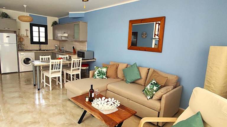 Die Ferienwohnung verfügt über zwei Schlafzimmer und bietet ein Wohnzimmer mit einem Satelliten-Flachbild-TV. Eine gut ausgestattete Küche, zwei Badezimmer mit Bidet und Dusche sowie eine Veranda/Patiobegehren die Einrichtung. Handtücher und Bettwäsche werden bereitgestellt.