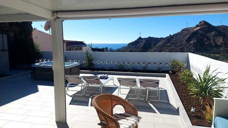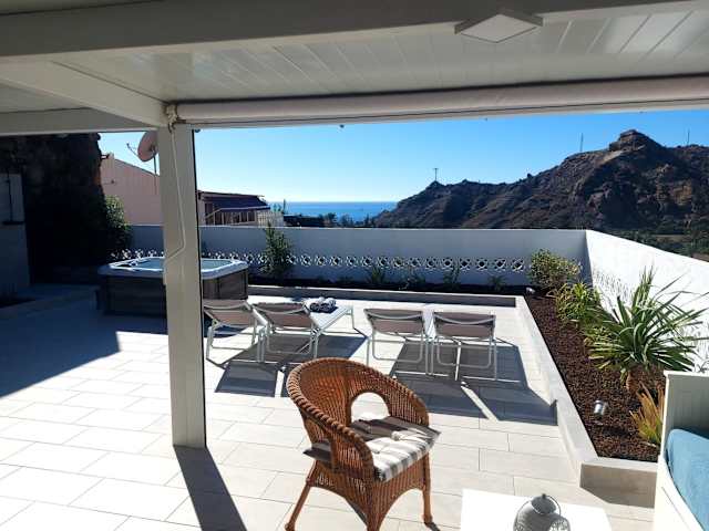 Casa Platero - Bungalow with Jacuzzi and pool bietet Übernachtungsmöglichkeiten mit kostenlosem WLAN, Klimaanlage, einem Außenpool sowie einer Terrasse. Die Unterkunft besticht durch einen Meerblick und bietet eine Veranda oder ein Patio.