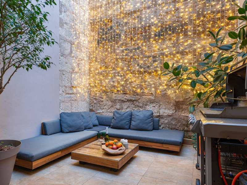 Das Ferienhaus bietet vier Schlafzimmer und zwei Badezimmer, die mit einem Bidet, einer Dusche und einem Haartrockner ausgestattet sind. Die Klimaanlage sorgt für zusätzlichen Komfort. Die Küche ist vollständig ausgestattet mit Kühlschrank, Geschirrspüler, Ofen, Kaffeemaschine und Wasserkocher. Eine Veranda oder ein Patio ergänzen die Ausstattung.