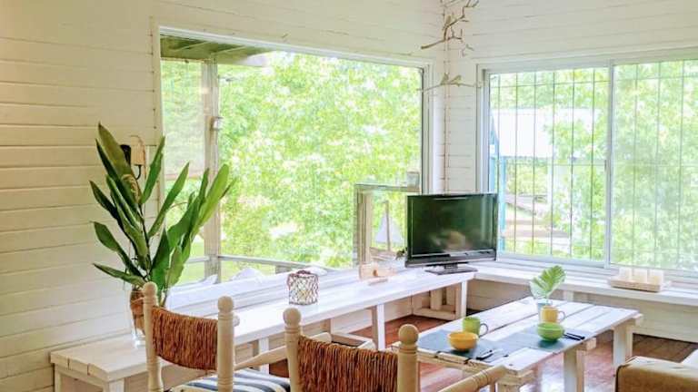 Casa quinta de rio ist eine Villa, die ihren Gästen einen Garten und eine Terrasse zur Verfügung stellt. Die Unterkunft bietet kostenloses WLAN und einen Blick auf den Garten.