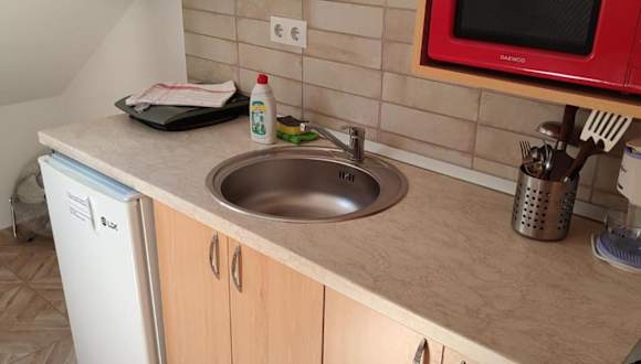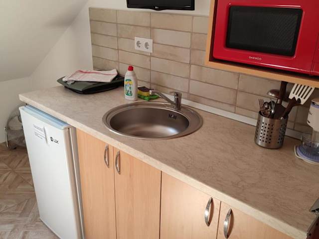 Die Unterkunft verfügt über eine voll ausgestattete Küchenzeile mit einem Kühlschrank und einer Kaffeemaschine, was Eigenverpflegung ermöglicht.