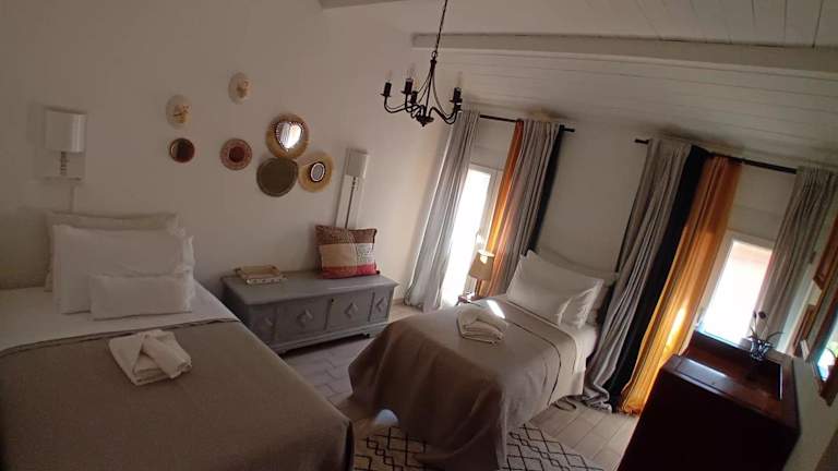 Das Ferienhaus bietet zwei Schlafzimmer, ein Wohnzimmer, eine voll ausgestattete Küche mit Kühlschrank und Kaffeemaschine sowie ein Badezimmer mit Bidet und Dusche. Handtücher und Bettwäsche werden zur Verfügung gestellt.