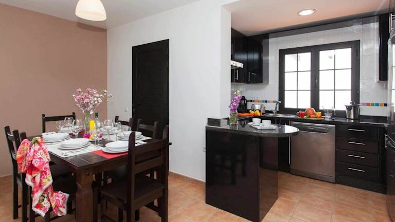 Das Ferienhaus verfügt über eine voll ausgestattete Küche mit Kühlschrank und Ofen, sowie über eine Waschmaschine und drei Badezimmer. Handtücher und Bettwäsche werden in der Unterkunft bereitgestellt.