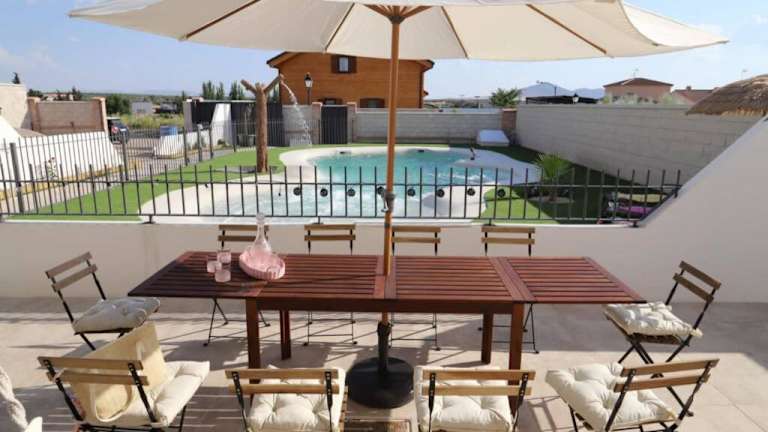 Das Casa Rural Alegría de Toledo, Guadamur, Puy du Fou bietet eine komfortable Unterkunft in Guadamur mit herrlichem Stadtblick. Hier können Sie Ihren Aufenthalt in vollen Zügen genießen, mit Annehmlichkeiten wie einem Außenpool, einem Garten und einer Terrasse. Das Ferienhaus ist gut ausgestattet und verfügt über einen eigenen Pool, Grillmöglichkeiten und kostenfreie Privatparkplätze. Die Lage ist ideal, um die umliegenden Sehenswürdigkeiten wie Puy du Fou España und das Casa-Museo de El Greco zu erkunden. Der Flughafen Madrid-Barajas ist ebenfalls gut erreichbar.