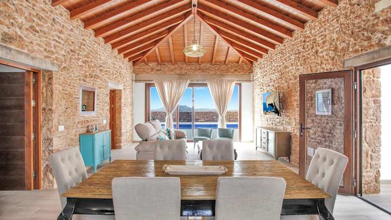 Die Villa umfasst 2 Schlafzimmer und 2 Badezimmer. Zur Ausstattung gehören Bettwäsche, Handtücher, ein TV mit Satellitenkanälen, eine voll ausgestattete Küche sowie eine Veranda oder ein Patio mit Meerblick.