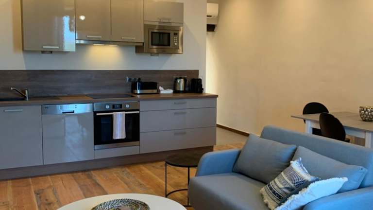 Die Ferienwohnung besteht aus einem Schlafzimmer, einem Wohnzimmer und einer voll ausgestatteten Küche, die mit einem Kühlschrank und einer Kaffeemaschine ausgestattet ist. Das Badezimmer verfügt über eine Dusche und einen Haartrockner. Zudem sind in der Unterkunft Rauchmelder installiert, und es handelt sich um eine Nichtraucherunterkunft.