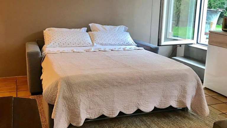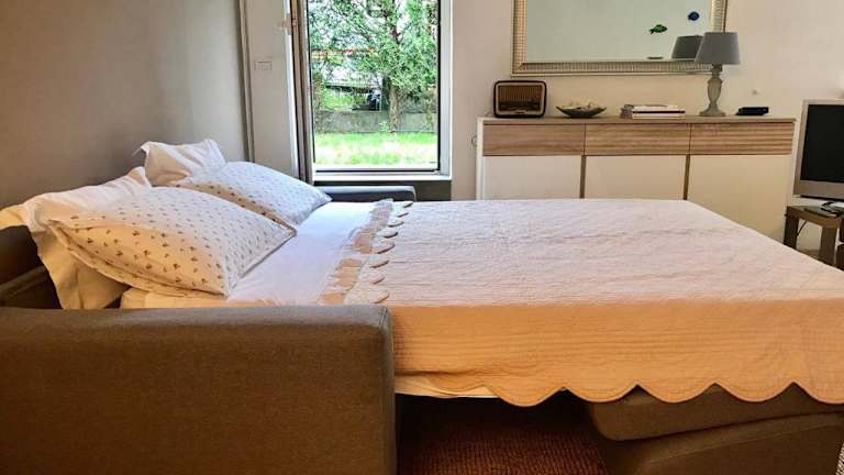 Die Ferienwohnung verfügt über ein Schlafzimmer und ein Wohnzimmer mit einem TV. Die voll ausgestattete Küche ist mit einem Kühlschrank und einer Herdplatte versehen. Ein Badezimmer mit einer Dusche gehört ebenfalls zur Ausstattung. Handtücher und Bettwäsche werden bereitgestellt.