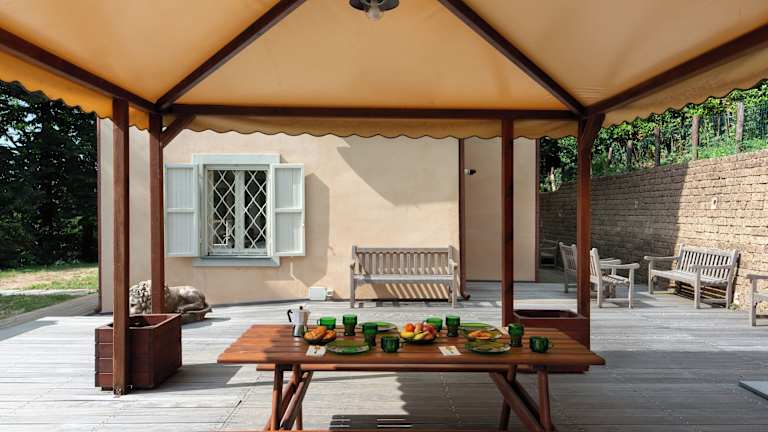 Genießen Sie den Außenpool (je nach Saison geöffnet) und den schönen Ausblick auf den Garten. Die Villa bietet Ihnen die Möglichkeit, sich zu entspannen und die Natur zu genießen.