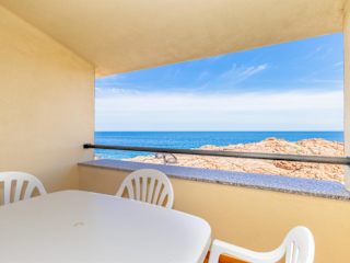 Casa sulla Scogliera Isola Rossa bietet Übernachtungsmöglichkeiten in Form einer Ferienwohnung, die über eine Veranda oder ein Patio mit Meerblick verfügt.