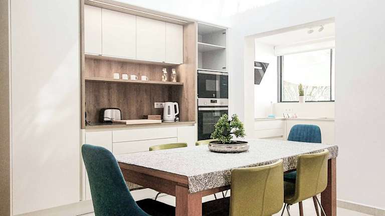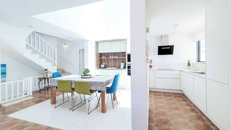 Die Villa umfasst 3 Schlafzimmer, ein Wohnzimmer sowie eine voll ausgestattete Küche mit Kühlschrank und Kaffeemaschine. Des Weiteren sind 4 Badezimmer mit Dusche und Haartrockner vorhanden. Handtücher und Bettwäsche werden bereitgestellt.