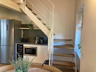 Die Ferienwohnung verfügt über einen Balkon mit Gartenblick, ein Schlafzimmer, ein Wohnzimmer sowie einen Kabel Flachbild-TV. Zusätzlich ist eine gut ausgestattete Küche vorhanden, und das Badezimmer ist mit einem Bidet und einer Dusche ausgestattet. Handtücher und Bettwäsche werden bereitgestellt.