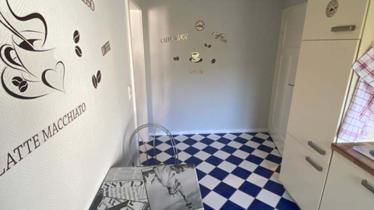 Die Ferienwohnung verfügt über eine Küche, die mit einem Ofen, einer Mikrowelle und einer Kaffeemaschine ausgestattet ist. Keine Informationen zur Verpflegung sind darüber hinaus vorhanden.
