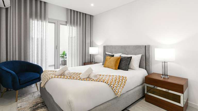 Die Ferienwohnung besteht aus zwei Schlafzimmern, einem Wohnzimmer sowie einer voll ausgestatteten Küche, die mit einem Kühlschrank und einer Kaffeemaschine ausgestattet ist. Es gibt zudem zwei Badezimmer, die mit einem Bidet und einer Dusche ausgestattet sind. Handtücher und Bettwäsche werden bereitgestellt. Die Ausstattung umfasst außerdem einen Grill, einen Außenpool und eine Terrasse.