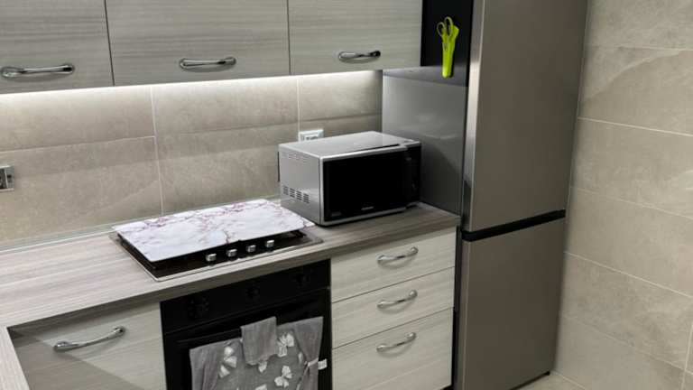 Die Ferienwohnung besteht aus 2 Schlafzimmern, einem Wohnzimmer und einer voll ausgestatteten Küche, die mit einem Kühlschrank und einem Wasserkocher ausgestattet ist. Das Badezimmer ist mit einem Bidet und einer Dusche eingerichtet. Handtücher und Bettwäsche werden bereitgestellt, und die Wohnung ist klimatisiert.