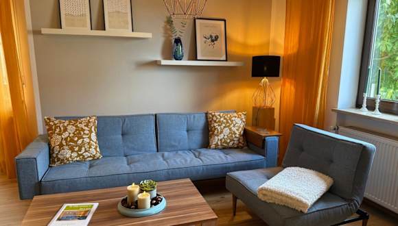 Die Ferienwohnung umfasst 2 Schlafzimmer, ein Wohnzimmer und ein Badezimmer mit Dusche. Ausgestattet ist die Unterkunft zudem mit einem Flachbild-TV sowie einer gut ausgestatteten Küche, die einen Kühlschrank und einen Geschirrspüler beinhaltet. Handtücher und Bettwäsche werden bereitgestellt.