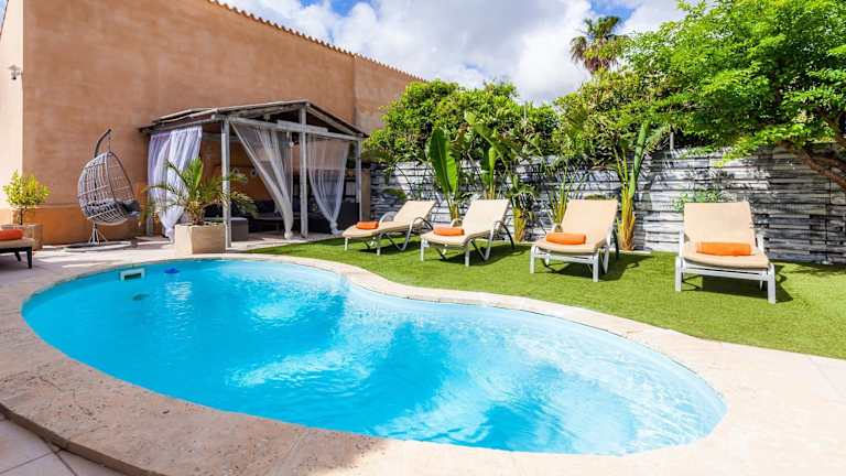 Die Villa verfügt über 5 Schlafzimmer, 3 Badezimmer, bereitgestellte Bettwäsche und Handtücher, einen TV mit Satellitenkanälen, eine voll ausgestattete Küche sowie eine Terrasse mit Stadtblick. Zudem steht ein Whirlpool zur Verfügung.