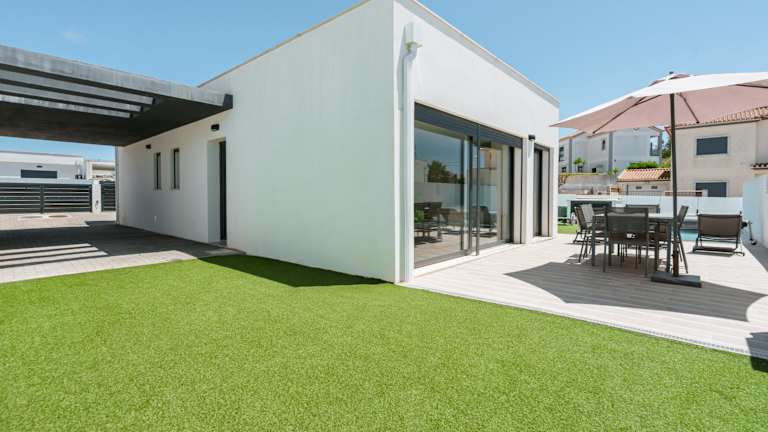Das Ferienhaus bietet eine komfortable Ausstattung mit Klimaanlage, die aus drei Schlafzimmern, einem Wohnzimmer und einer voll ausgestatteten Küche besteht. Zur Küchenausstattung gehören unter anderem ein Kühlschrank und eine Kaffeemaschine. Es sind zwei Badezimmer vorhanden, die mit Dusche und Haartrockner ausgestattet sind. Handtücher und Bettwäsche werden bereitgestellt.