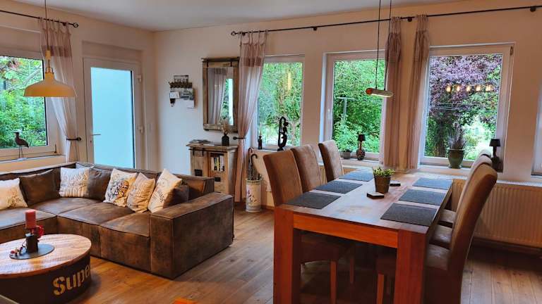Das Casa Verde Sinnerthal in Neunkirchen ist ein charmantes Ferienhaus, das sich ideal für einen entspannten Aufenthalt eignet. Mit einer Terrasse, einem Garten und kostenfreiem WLAN bietet die Unterkunft alle Annehmlichkeiten, die man sich für einen erholsamen Urlaub wünscht. Die Umgebung bietet zahlreiche Aktivitäten wie Wandern, Radfahren und Darts, sodass für jeden Geschmack etwas dabei ist. Das Ferienhaus selbst ist modern eingerichtet und verfügt über zwei Schlafzimmer, ein gemütliches Wohnzimmer, eine voll ausgestattete Küche und ein Badezimmer mit Dusche und Badewanne. Handtücher und Bettwäsche werden gestellt, sodass Sie sich um nichts kümmern müssen. Ein Grill steht Ihnen zur Verfügung, um gemütliche Abende im Garten zu verbringen. Die Unterkunft liegt in der Nähe der Kongresshalle und des Hauptbahnhofs Saarbrücken, sodass Sie auch die Möglichkeit haben, die umliegenden Städte zu erkunden. Der Flughafen Saarbrücken ist ebenfalls gut erreichbar, und die Unterkunft bietet einen kostenpflichtigen Flughafentransfer für Ihren Komfort.