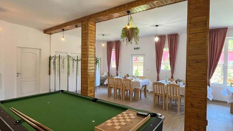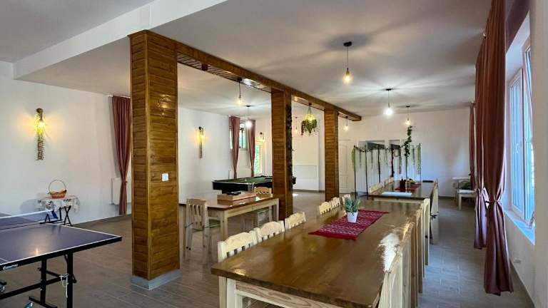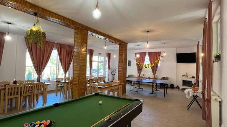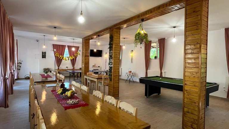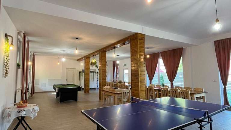 Das Casa Vio in Nehoiu ist eine charmante Unterkunft, die eine Vielzahl von Annehmlichkeiten bietet, um Ihren Aufenthalt angenehm und unterhaltsam zu gestalten. Mit einem schönen Garten, kostenfreiem WLAN und einer Gemeinschaftsküche können Sie sich wie zu Hause fühlen. Der Ferienhof verfügt über geräumige Schlafzimmer, ein gemütliches Wohnzimmer und eine gut ausgestattete Küche. Genießen Sie die Bergaussicht und nutzen Sie die Freizeitangebote wie Billard und Tischtennis. Kostenlose Privatparkplätze stehen zur Verfügung und Handtücher sowie Bettwäsche werden gestellt. Machen Sie das Beste aus Ihrem Aufenthalt im Casa Vio und erkunden Sie die Umgebung.