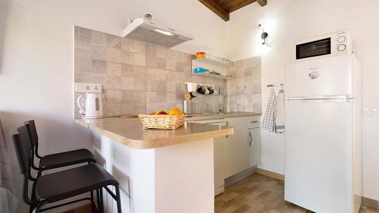 Die Ferienwohnung verfügt über 1 Schlafzimmer, 1 Badezimmer, Bettwäsche, Handtücher, einen TV, eine voll ausgestattete Küche und eine Terrasse mit Blick auf die Berge.