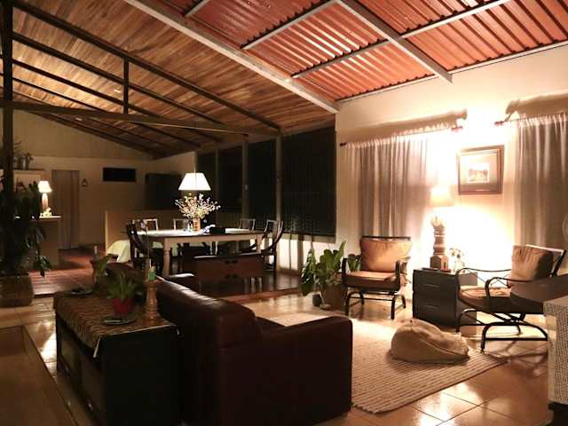 Das Casa Zu ist eine charmante Unterkunft mit einem wunderschönen Gartenblick. Es bietet geräumige und komfortable Unterkünfte in Form eines Chalets mit drei Schlafzimmern, einer voll ausgestatteten Küche und zwei Bädern. Das Hotel liegt in einer großartigen Lage, etwa 26 km vom beeindruckenden Wasserfall La Fortuna entfernt. Auch die heißen Quellen von Kalambu sind nur 28 km entfernt. Gäste können den Garten, die Terrasse und das hauseigene Restaurant genießen. Kostenlose Privatparkplätze stehen ebenfalls zur Verfügung. Für Naturliebhaber bietet die Umgebung Möglichkeiten zum Angeln und Erkunden der Natur. Beliebte Sehenswürdigkeiten wie der Park Mistico Arenal Hanging Bridges und Sky Adventures Arenal sind ebenfalls leicht erreichbar. Der nächstgelegene Flughafen befindet sich 21 km entfernt.