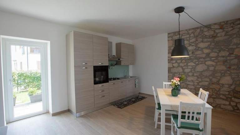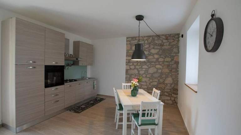 Die Ferienwohnung verfügt über ein Schlafzimmer, ein Wohnzimmer, einen Flachbild-TV sowie eine gut ausgestattete Küche mit Kühlschrank und Ofen. Zusätzlich gibt es ein Badezimmer mit Bidet. Handtücher und Bettwäsche werden bereitgestellt. Eine Veranda mit Gartenblick ist ebenfalls vorhanden.