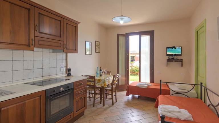 Die Zimmer sind mit einem Schlafsofa, einem Sitzbereich, einem Flachbild-TV mit Satellitenkanälen sowie einer gut ausgestatteten Küche ausgestattet. Jedes Zimmer verfügt über ein eigenes Badezimmer mit einem Bidet und einer Dusche. Zur Küchenausstattung gehören ein Kühlschrank, ein Ofen, eine Herdplatte und eine Kaffeemaschine.